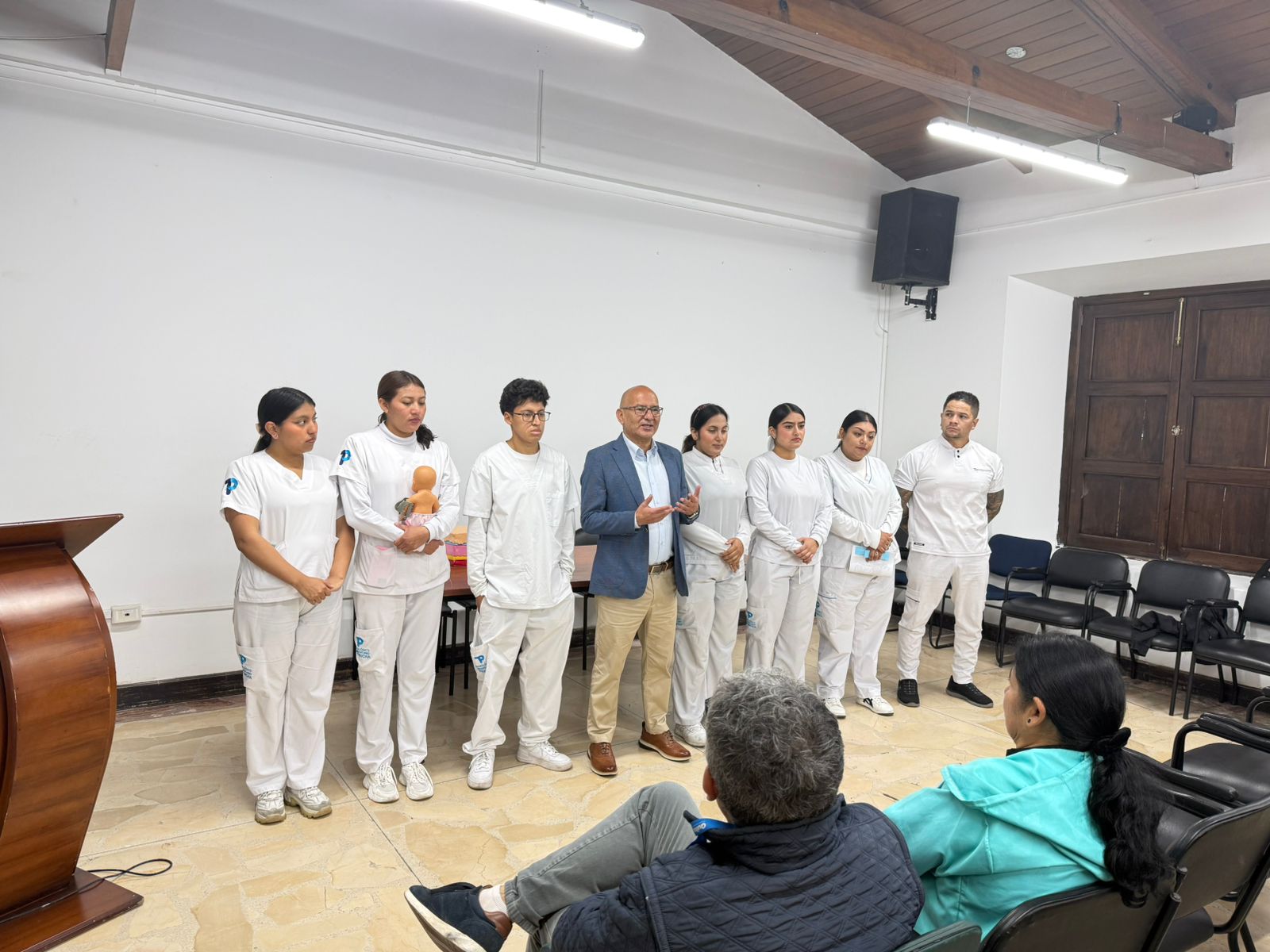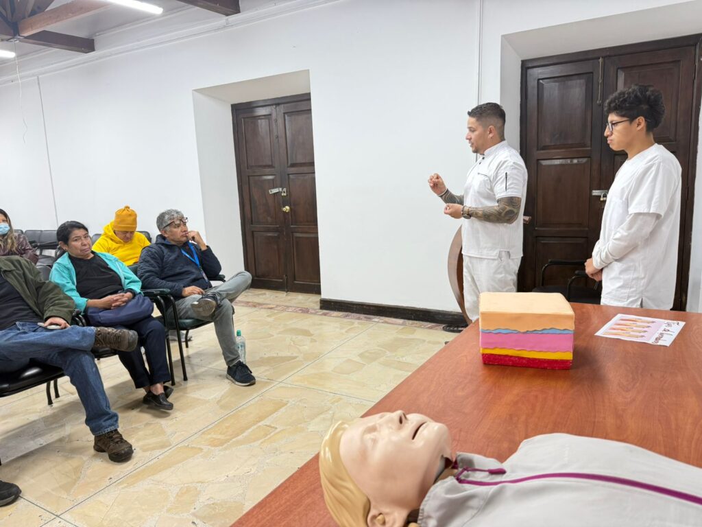 Asimismo, el Lic. Alexander Zúñiga, Coordinador de la Escuela de Salud, acompañó a los estudiantes durante el desarrollo de las jornadas, guiando el proceso formativo y apoyándolos en sus primeras experiencias de capacitación en territorio.