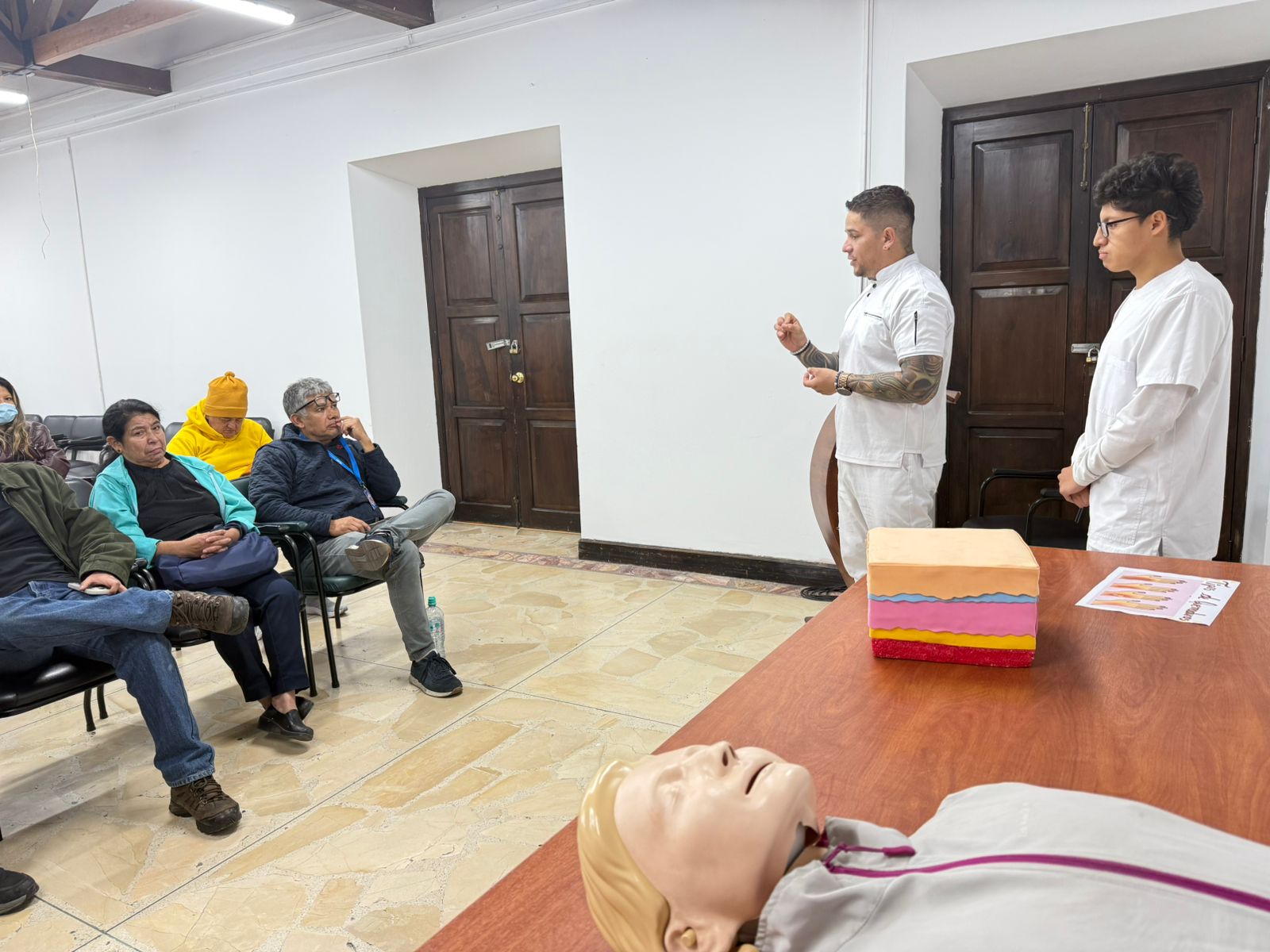 se impartieron talleres enfocados en rehabilitación física y primeros auxilios, contribuyendo al fortalecimiento de conocimientos prácticos en beneficio de la comunidad.