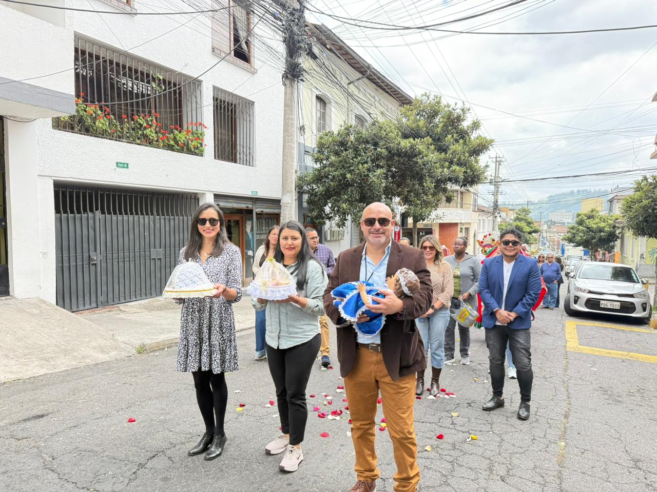 Al finalizar la Eucaristía, se realizó la entrega de los Niñitos, símbolo de protección y bendición. Uno de ellos fue confiado a los coordinadores y docentes del Tecnológico Pichincha, mientras que el segundo Niñito fue entregado al equipo de Radio Ondas Pichincha, quienes tendrán a su cuidado estas imágenes sagradas hasta el año venidero, con el anhelo de que sean guardianes del trabajo, la gestión y las labores que desempeñan ambos equipos.